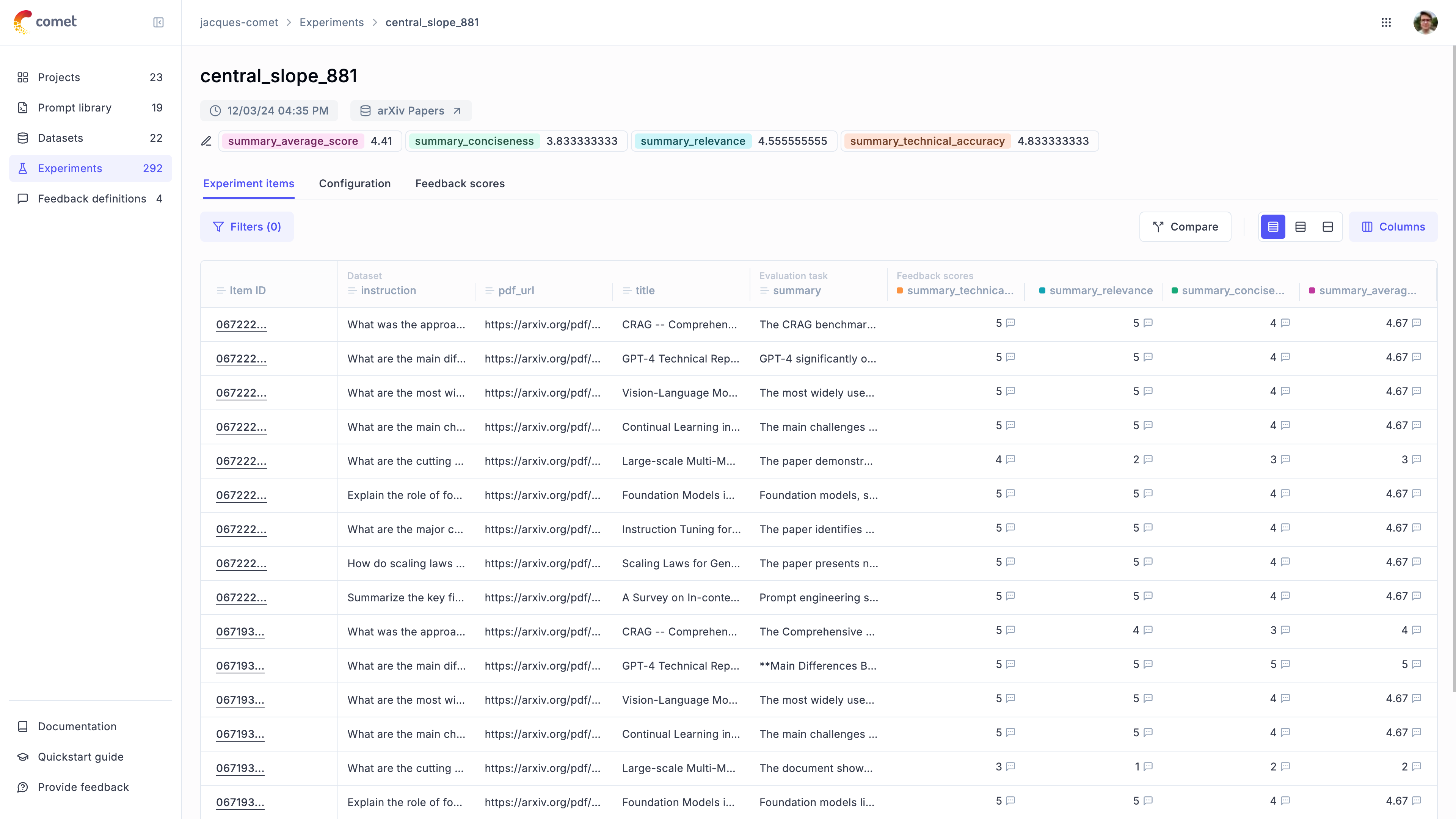 - Updated the experiments pages to make it easier to analyze the results of each experiment. Columns are now organized based on where they came from (dataset, evaluation task, etc) and output keys are now displayed in multiple columns to make it easier to review