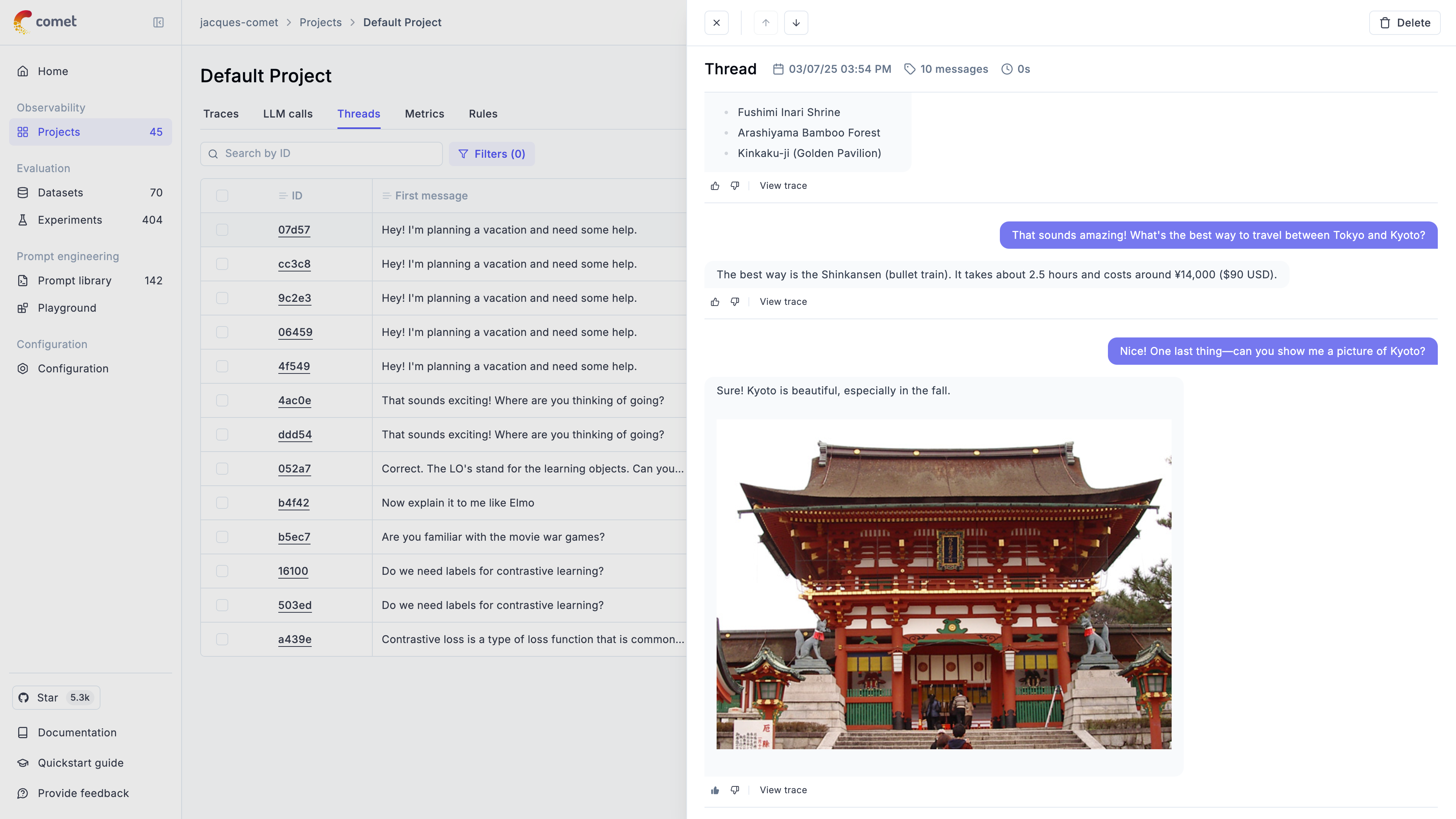 - A thumbs up / down feedback score definition is now added to all projects by default to make it easier to annotate traces.