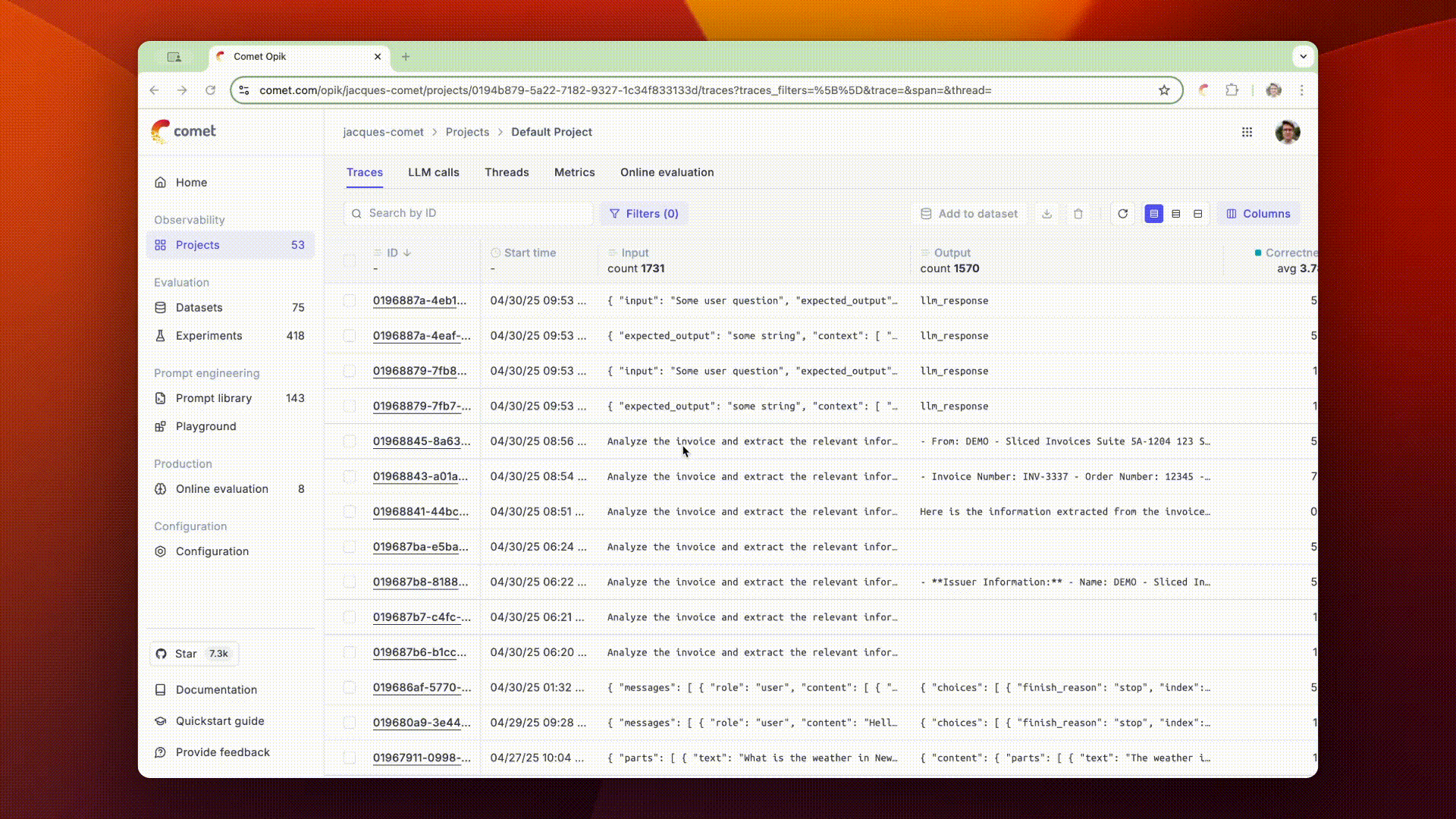 Opik Dashboard: