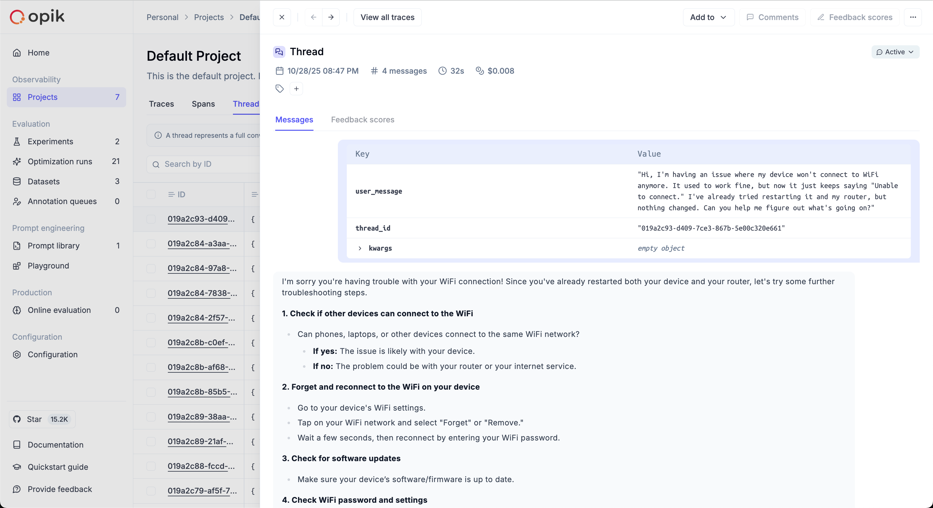 The simulated threads will be available in the Opik thread UI: