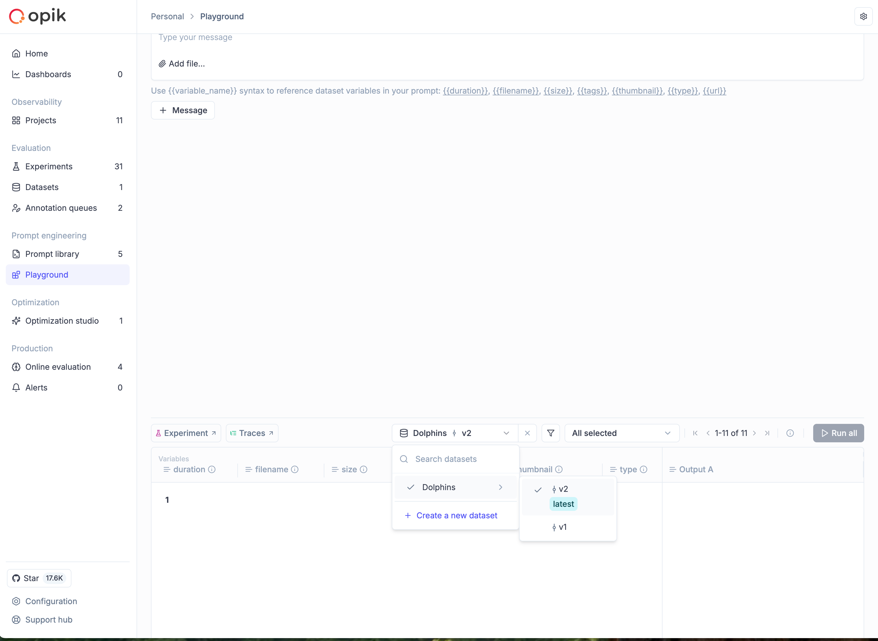 - Navigate to Evaluation > Datasets in the Opik UI.