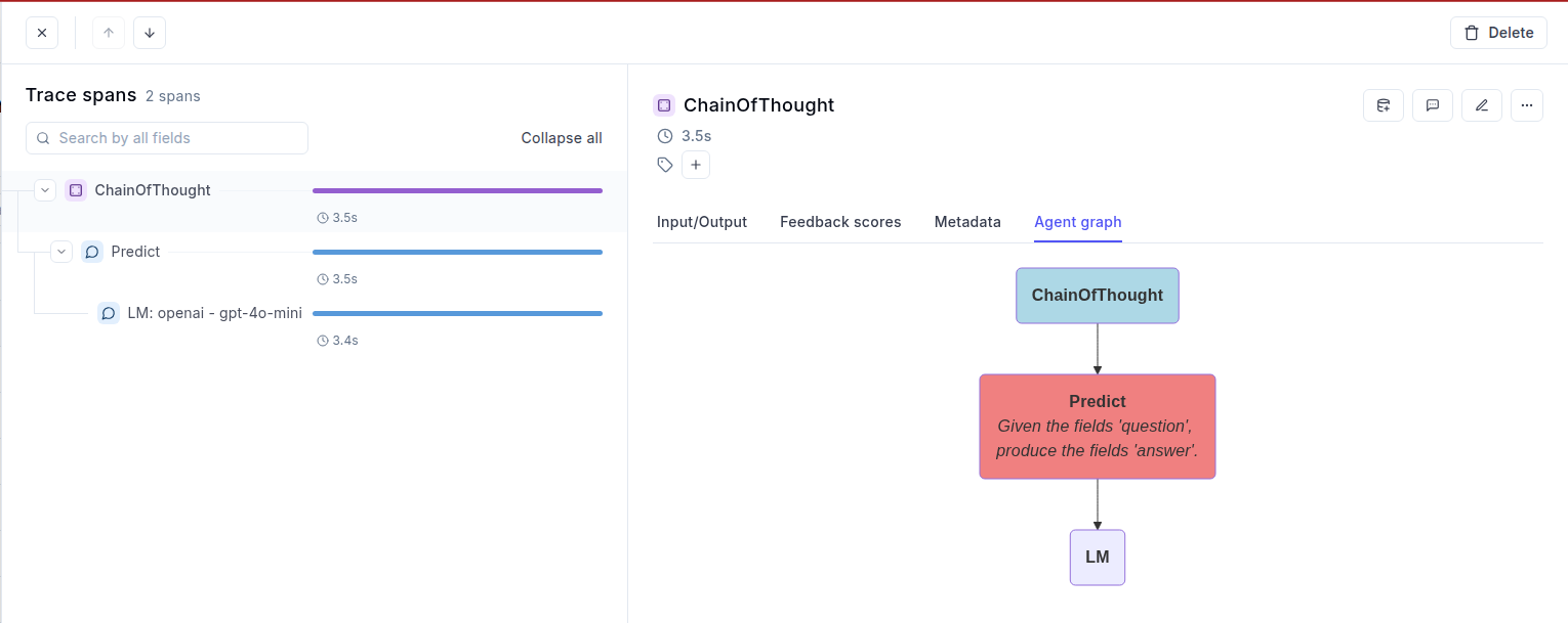 If you set log_graph to True in the OpikCallback, then each module graph is also displayed in the “Agent graph” tab: