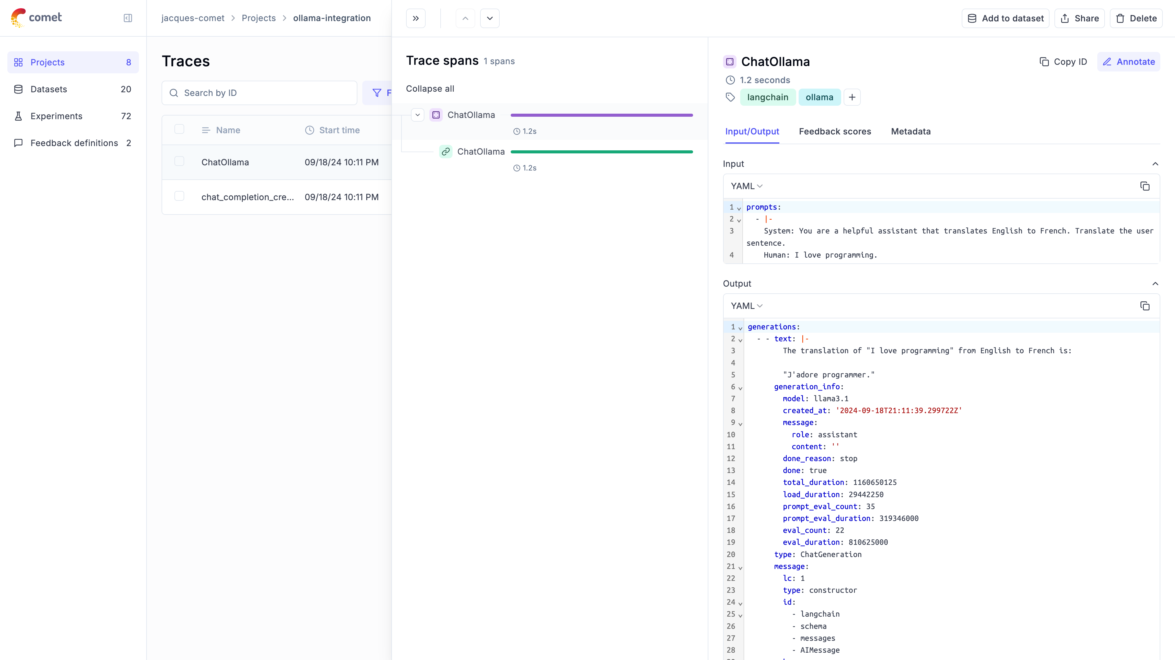 You will now be able to use the OpikTracer class to log all your Ollama calls made with LangChain to Opik: