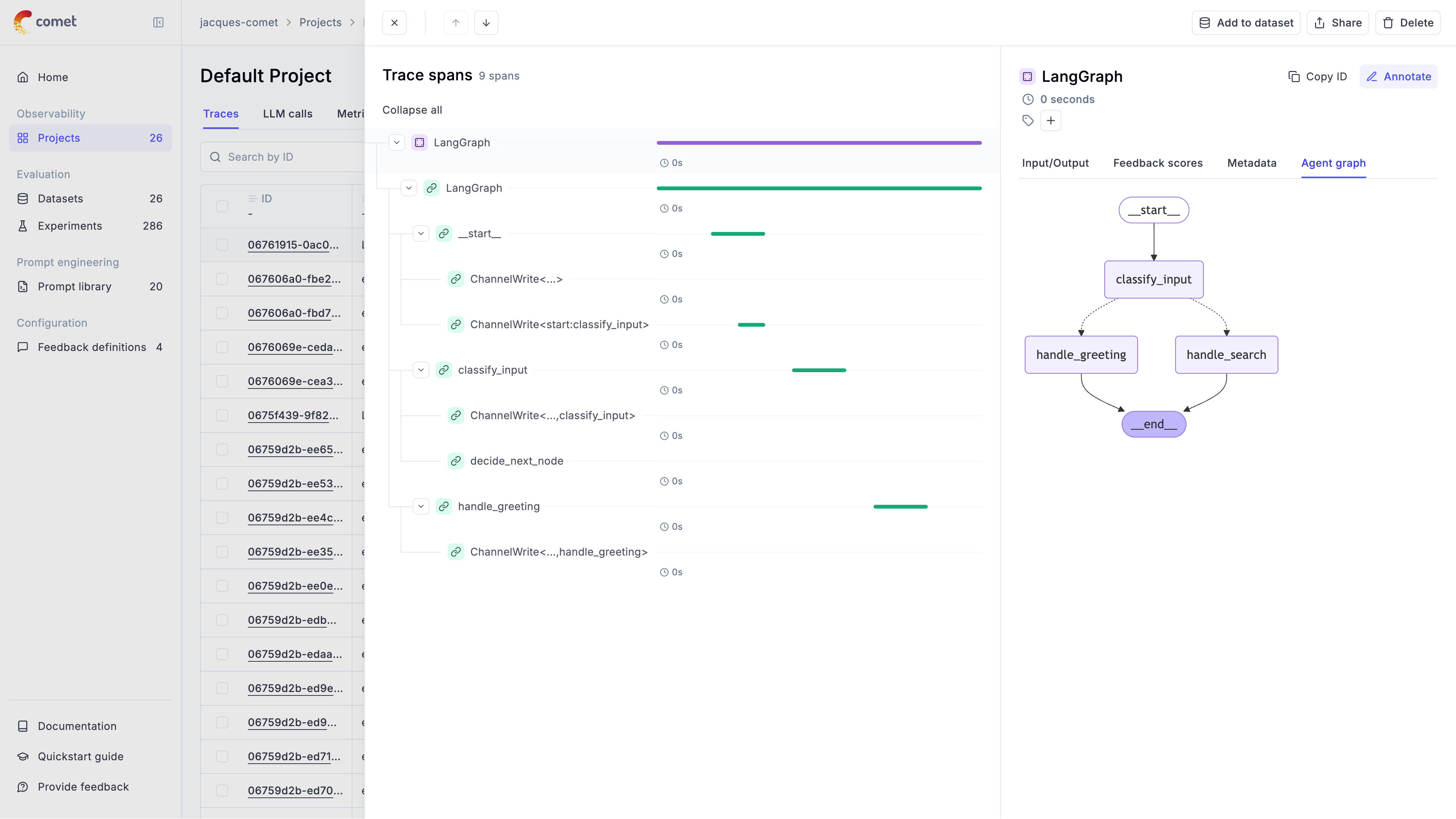 Opik will log the agent graph definition in the Opik dashboard which you can access by clicking on