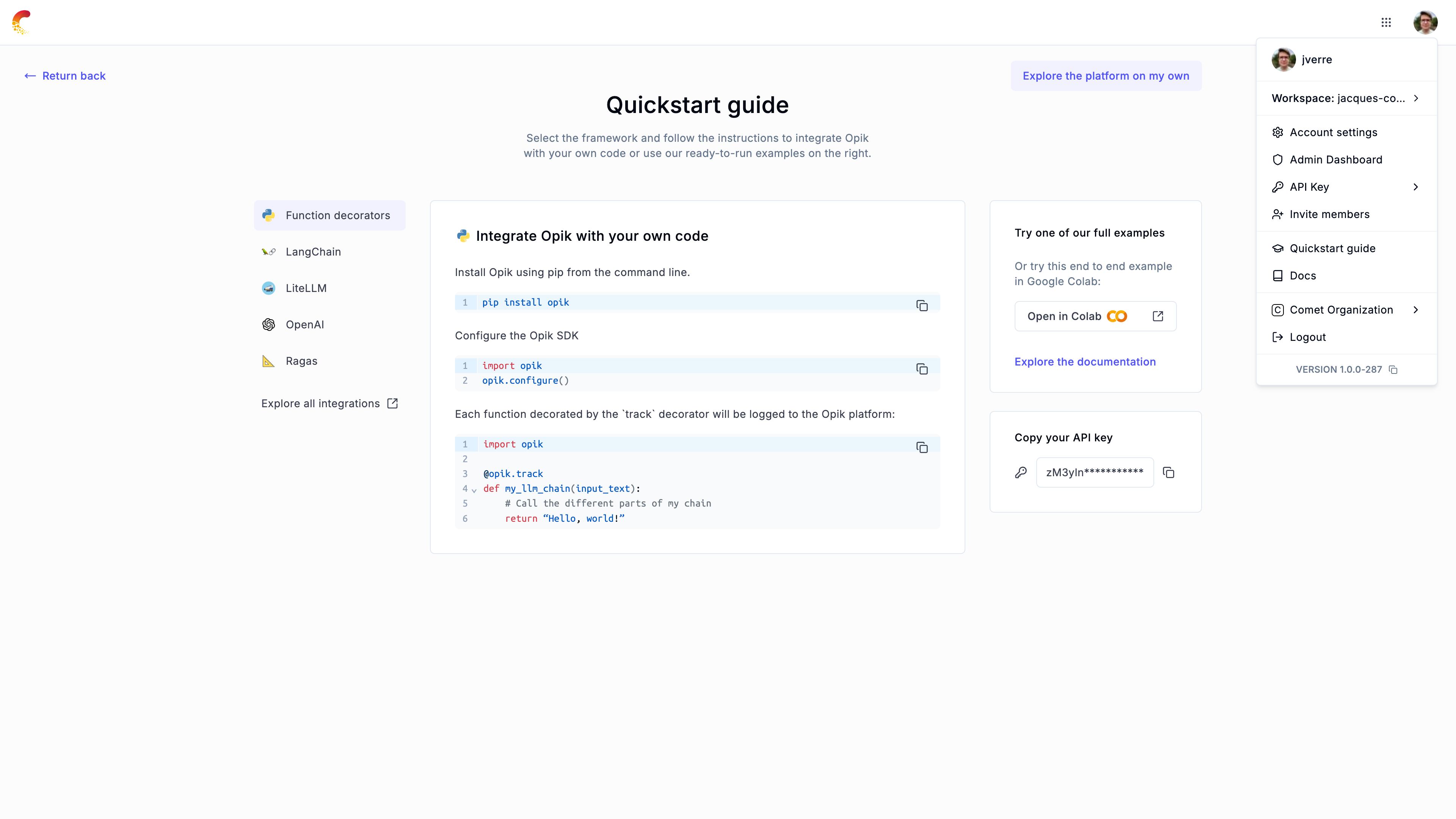 Opik Dashboard: