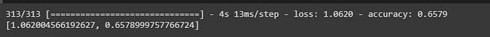 We train the model for 10 epochs and get 70% accuracy, which is significantly higher than ANN.