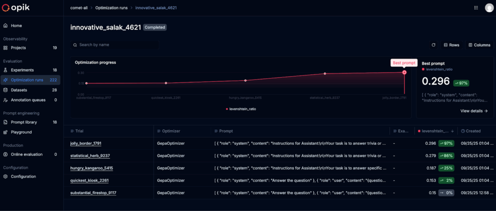 With expanded test coverage and SDK improvements, Opik Optimizer is quickly becoming the tool of choice for automated agent and prompt optimization.