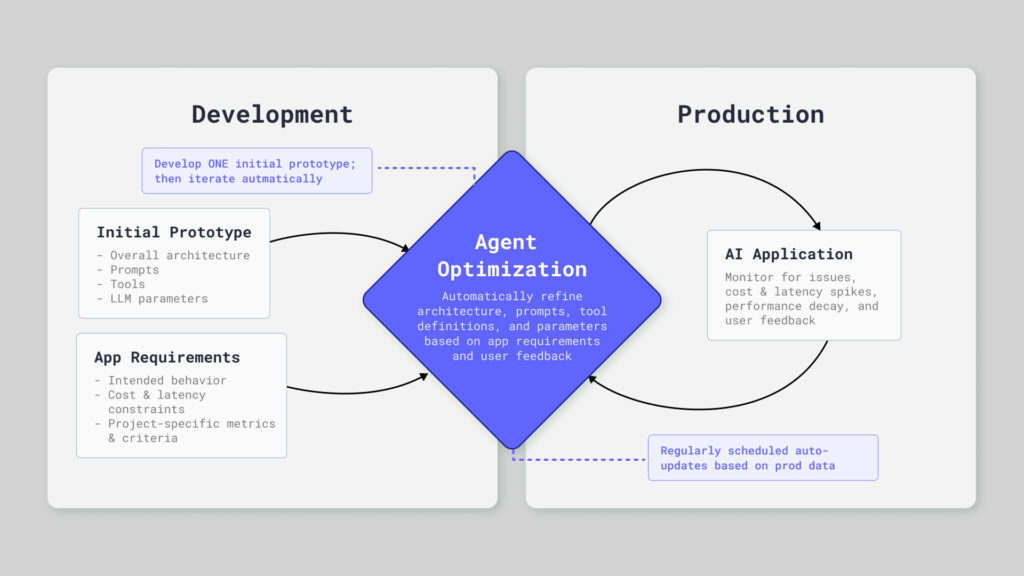 Today’s generative AI still leans heavily on manual human trial and error. Teams spend hours hand-tuning prompts, experimenting with model parameters, and tweaking tool definitions. There’s no guarantee that any change will show improvement during testing, and the whole process feels more like “guess and check” than disciplined development. In production, behavior drifts as users and the world change, forcing ongoing maintenance just to keep quality steady. What works for one model often fails for another, so “migrating” prompts during model upgrades becomes a costly chore. And as systems mature, organizations break a single prompts and model calls into multiple agents and tools, making end‑to‑end performance all the more difficult to reason about and improve.