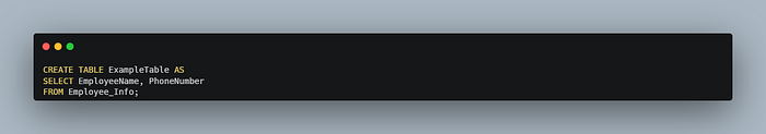 - CREATE TABLE command: The CREATE TABLE command is used to create tables. Columns are named and data types and sizes are specified for each column when a table is constructed. There is at least one column in each table. The syntax of the CREATE TABLE command is as follows: