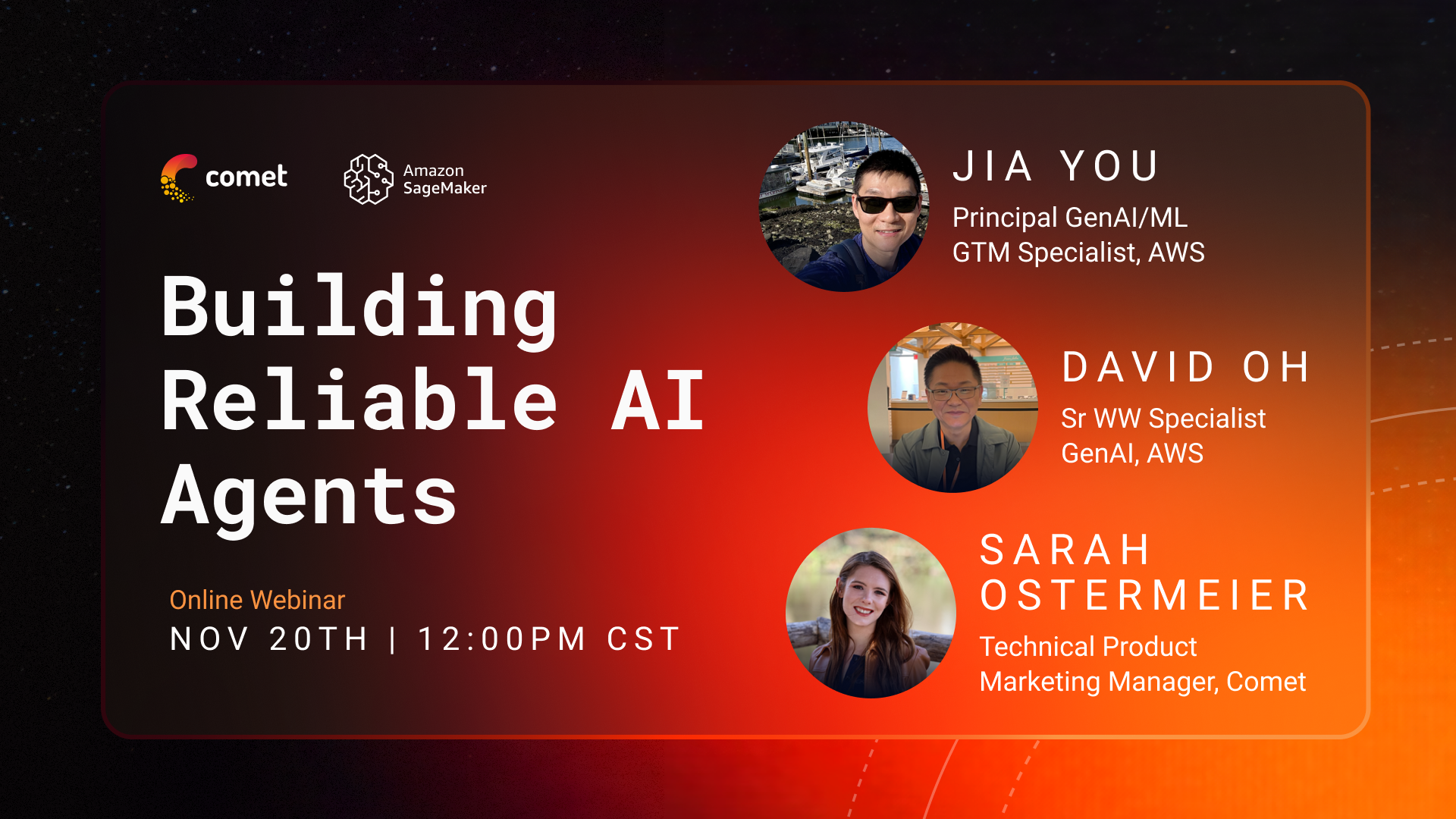 Register: Comet and AWS SageMaker Partner AI App: Building Reliable AI AgentsComet and AWS SageMaker Partner AI App: Building Reliable AI Agents