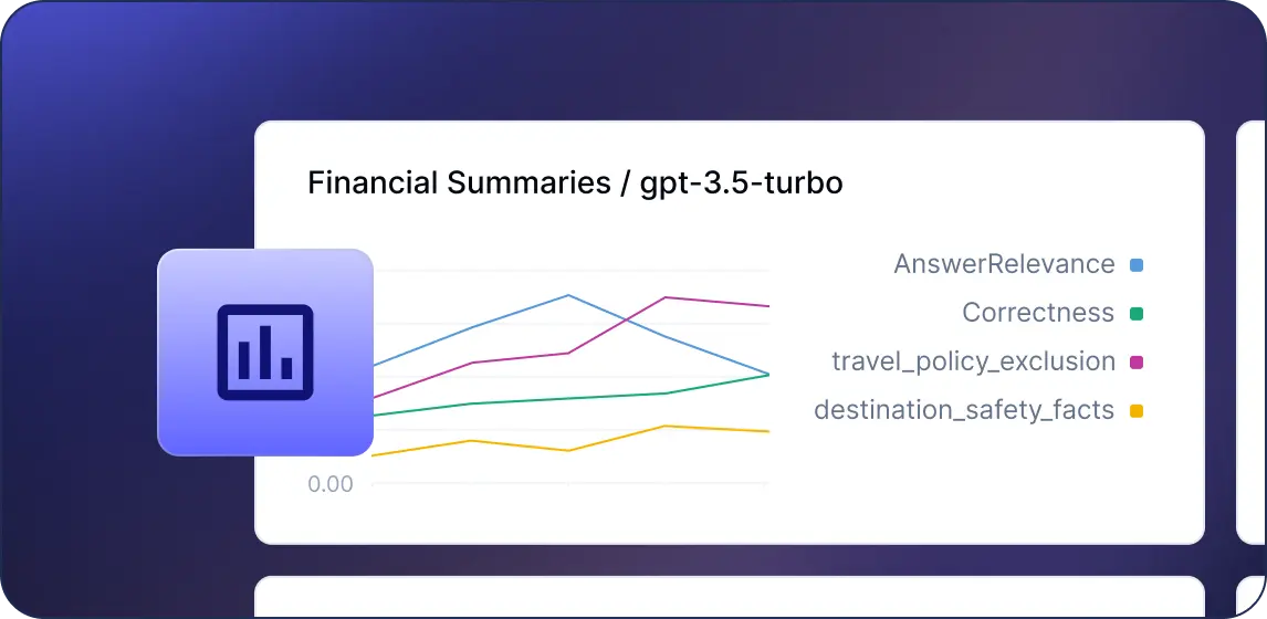 - Evaluate production outputs with 20+ bespoke LLM-as-a-judge metrics like ComplianceRiskJudge, or define custom metrics for your use case.
